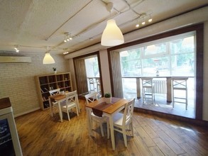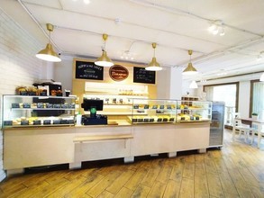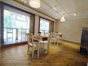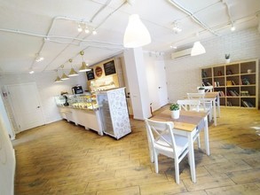 Внутри для посетителей создана тёплая домашняя атмосфера. Просторное помещение оформлено в стиле традиционных европейских пекарен: светлые тона, большие окна, через которые проникает естественный свет, удобные столики и стулья лаконичной формы, а в качестве декора книжные полки и зеленые растения в белых горшках.
